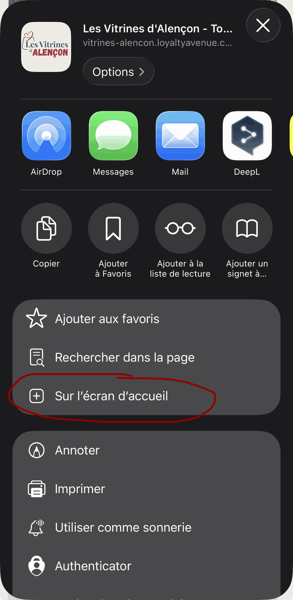 Touchez sur "Sur l'écran d'accueil"
